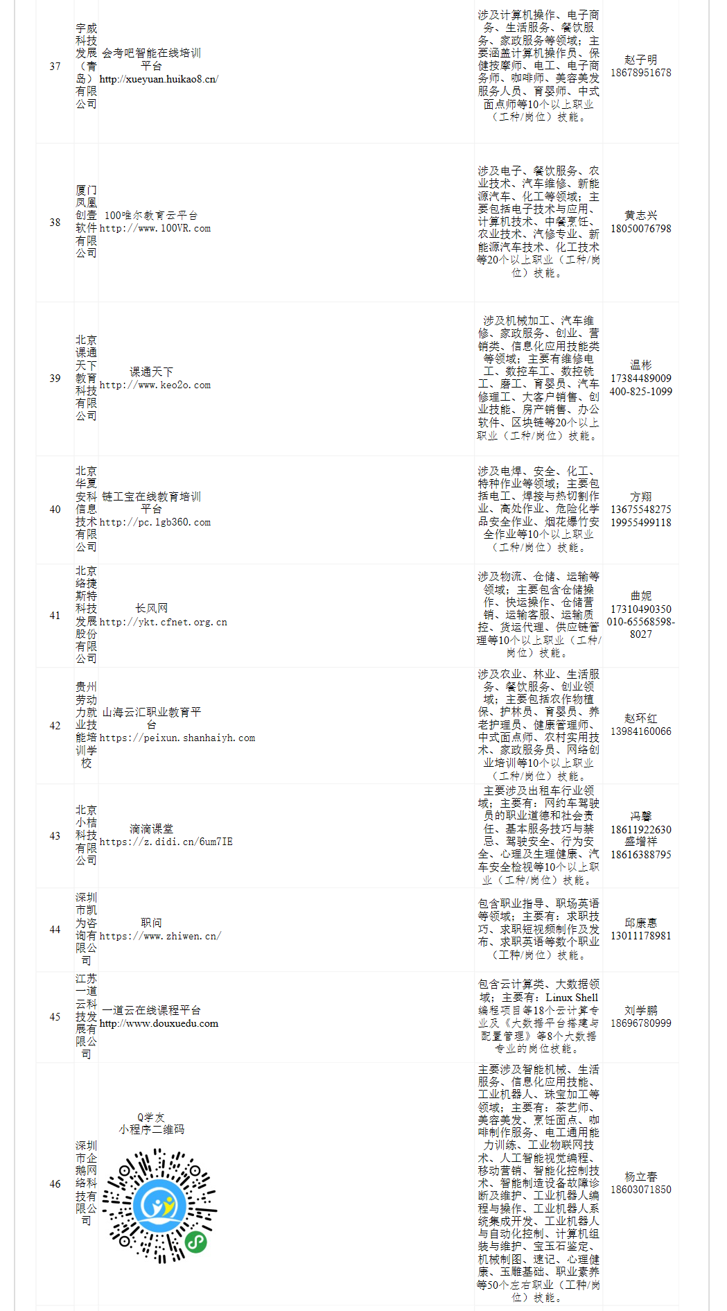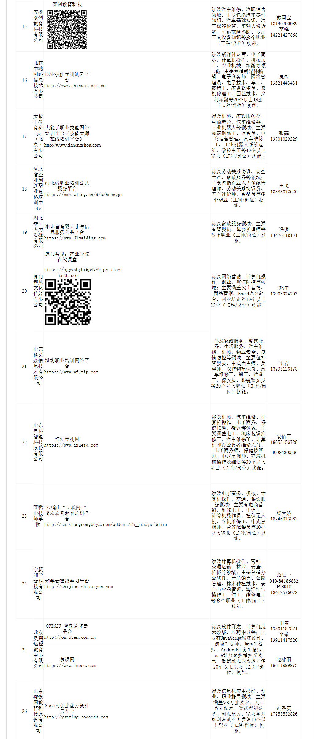 人力资源社会保障部推荐54家职业技能培训线上平台机构